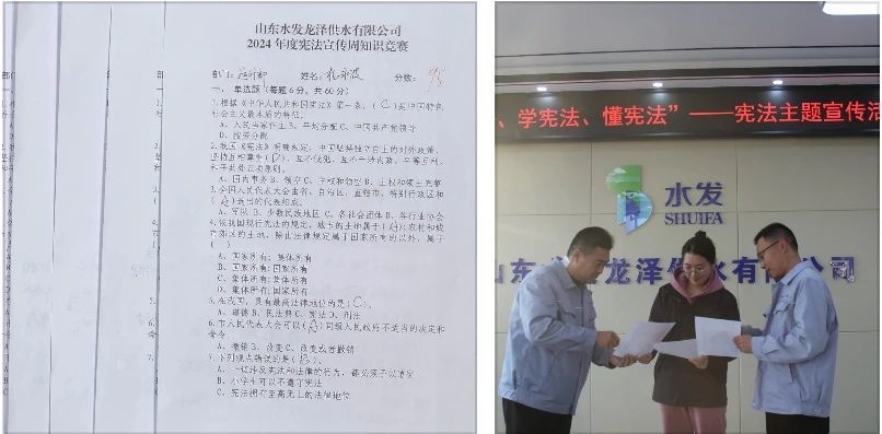 山東水發(fā)龍澤供水有限公司開(kāi)展“識(shí)憲法、學(xué)憲法、懂憲法”宣傳活動(dòng),活動(dòng)分為普法宣傳和憲法知識(shí)競(jìng)賽兩部分。